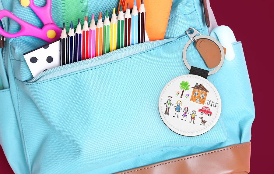 The sports bag, school backpack, or pencil case can easily get mixed up or accidentally left behind. A personalised key ring with your favourite picture on it makes your school supplies easy to recognise. The key ring is easy to attach the photo key chain to a strap or handle of the bag. The durable synthetic leather will keep up with your child's everyday life.