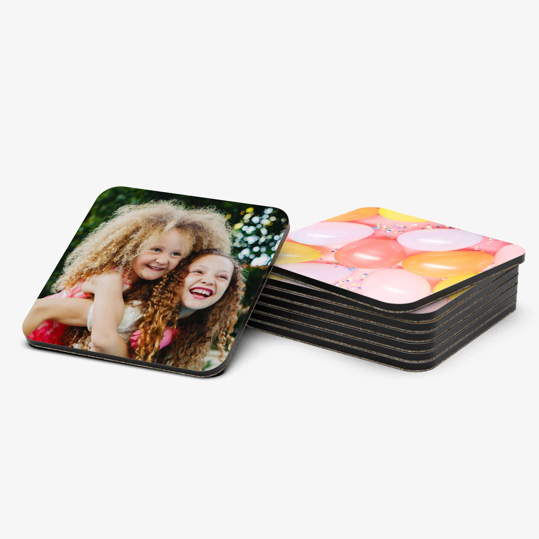 We print your personalised photo coasters using high-quality printing processes. The high-gloss finish really brings out the natural colours of your photos on the cork coasters.