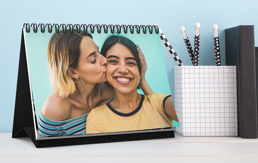 Per far sì che il tuo fotoflip si appoggi stabilmente su tutte le superfici, è dotato di un robusto supporto di cartone. Una volta aperto, ti basterà posizionare il tuo fotoflip personalizzato dove puoi vederlo meglio – sulla scrivania, sul davanzale o su una mensola.